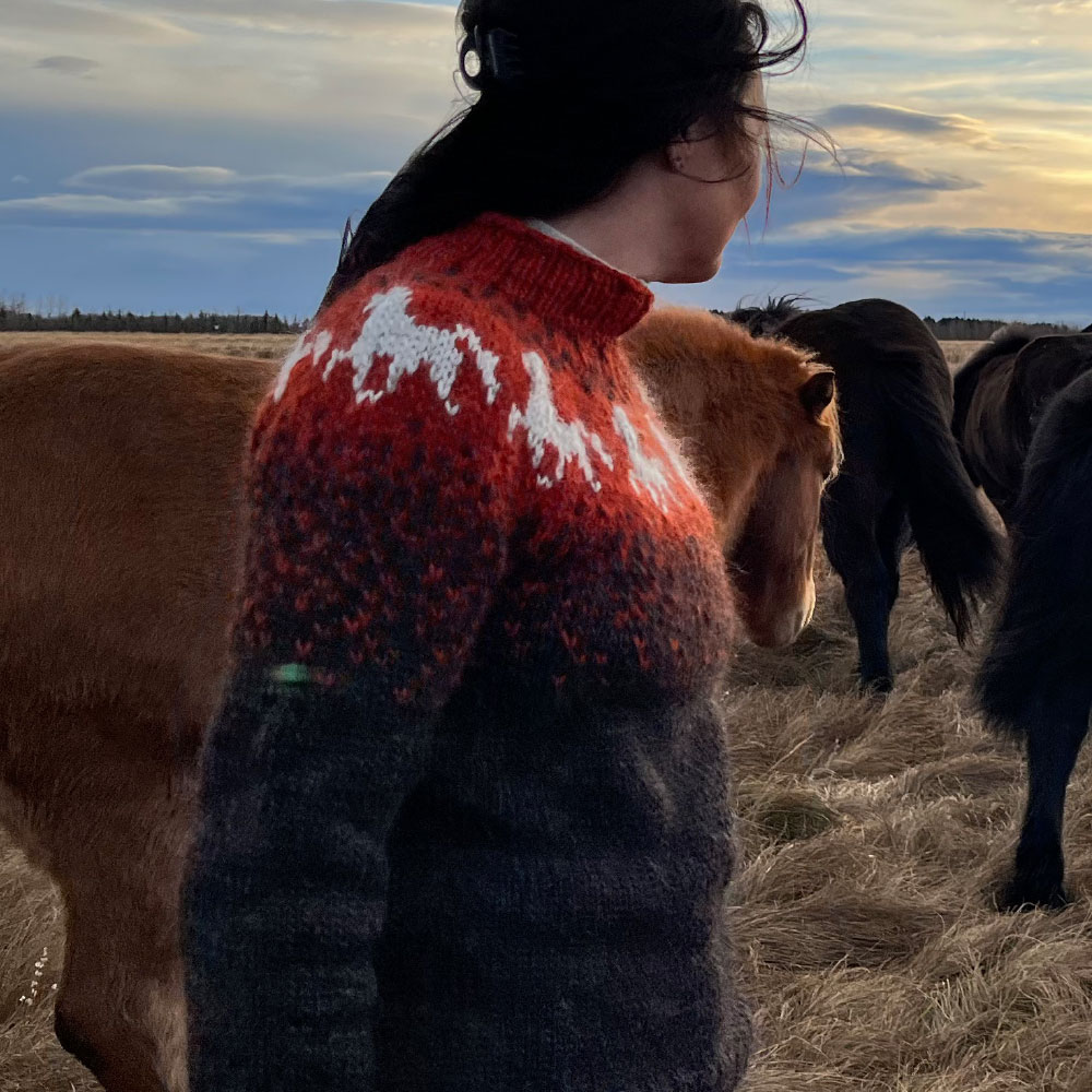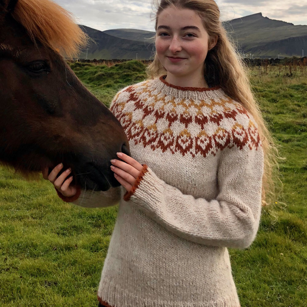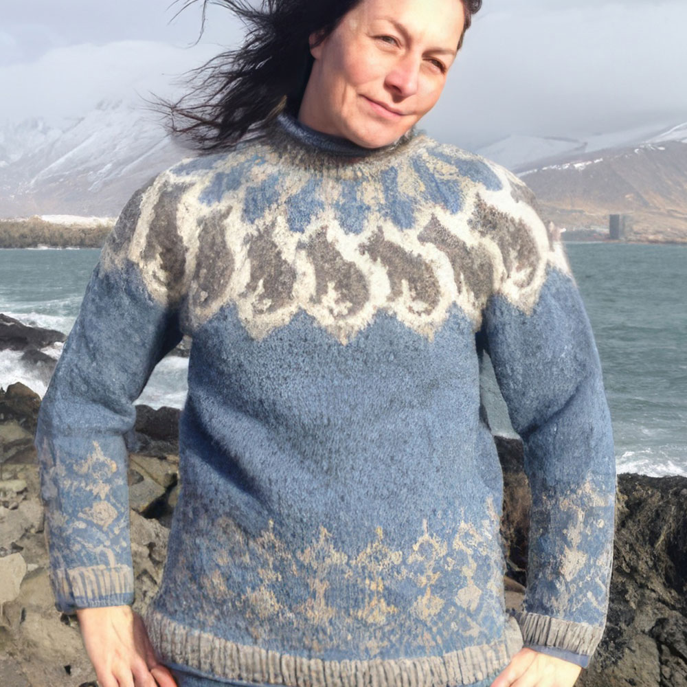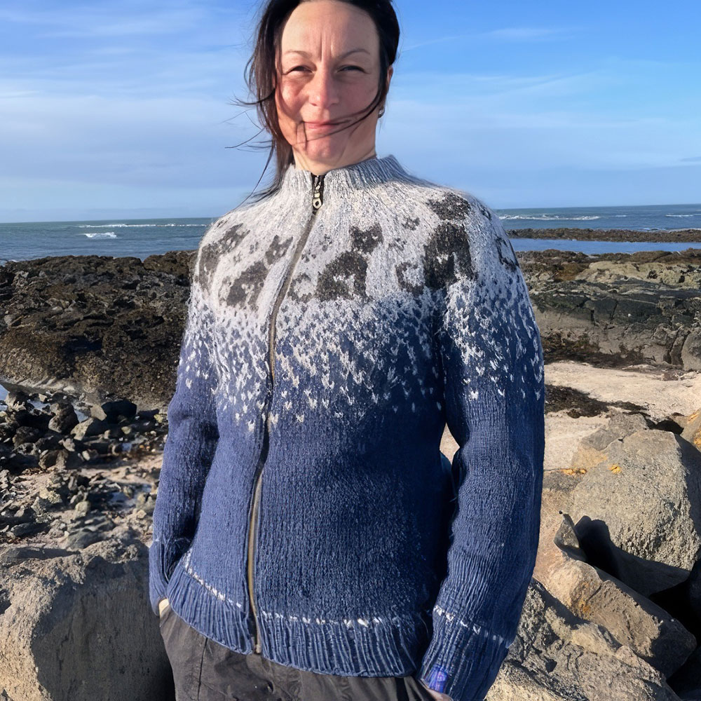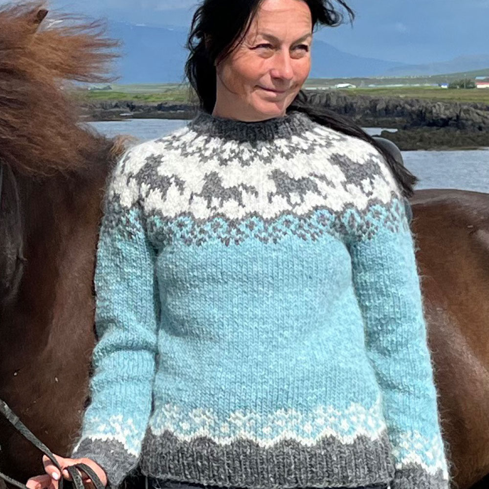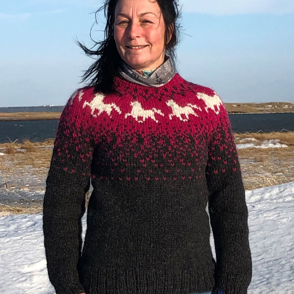 Hicke lebt mit ihrer Familie seit Jahren in Island und hat sich vom Strickfieber der Insel infizieren lassen. Sie strickt in immer wieder überraschenden Farbzusammenstellungen Modelle mit original Islandluft zwischen den Maschen.